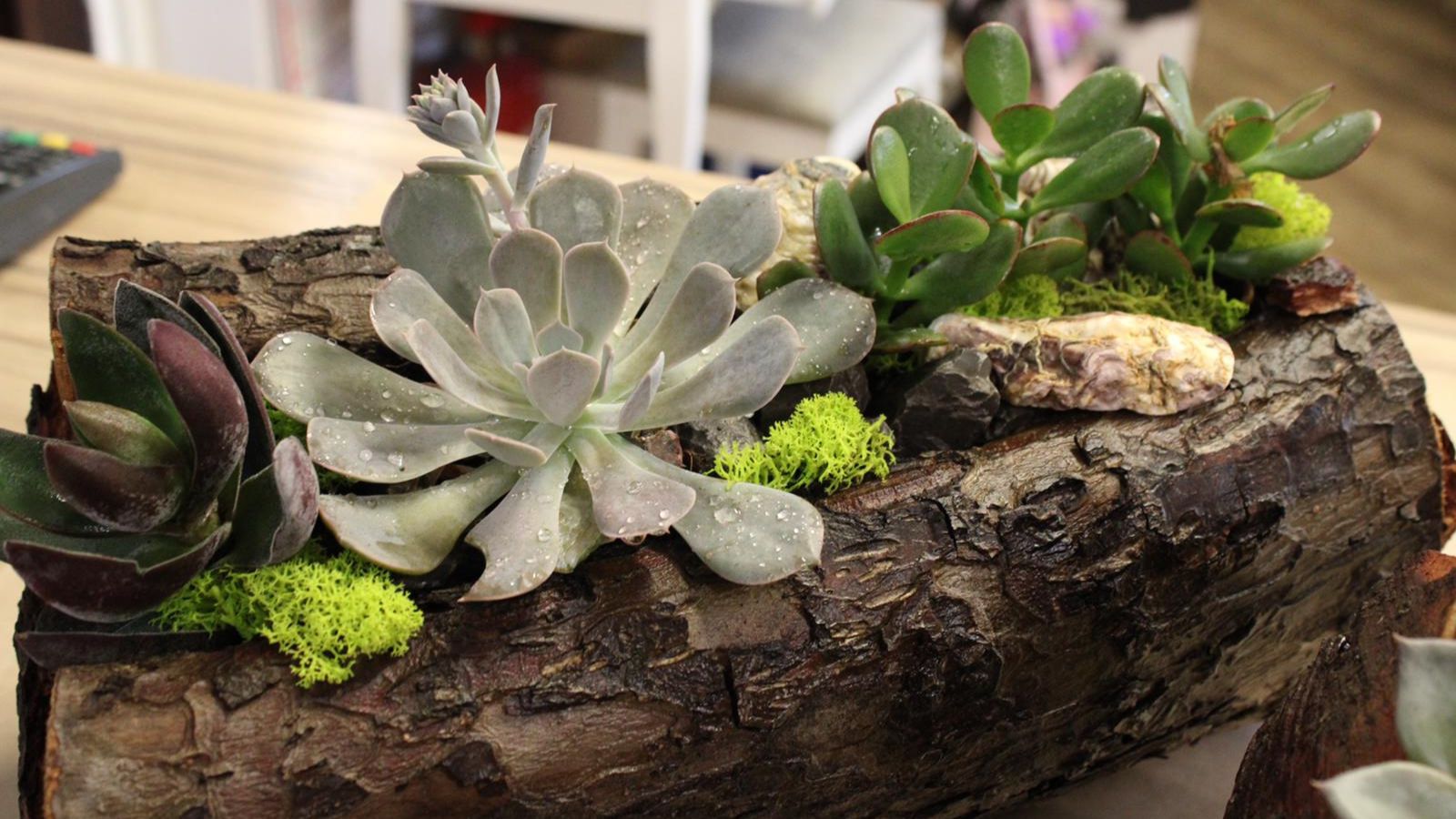 V lesena polena, nabrana v domačem gozdu, sadimo sukulentne rastline, ki so lepe, odporne in skoraj brez zahtev.